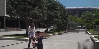 Slave gets pussy pinched in public
