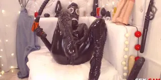 Submissive in Latex Drills her Pussy