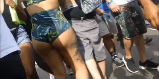 big booty brunette green cheeky shorts