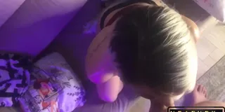 Cumshot on the StepSisters Face she did a Deep Blowjob and Sat on a Vibrator