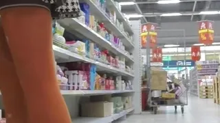 Walking around the store without panties