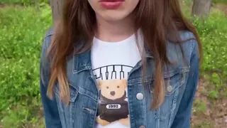 Brunette babe loves sucking my cock outside