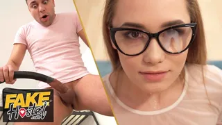 Fake Hostel - College guy gets his small COCK STUCK IN A VACUUM CLEANER