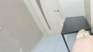 Skinny blonde girl Mia Cheers moans as she gets fucked hard in the kitchen in VR.